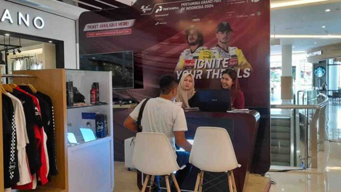 Lombok (ekbisntb.com) – Hingga saat ini penjualan tiket MotoGP Mandalika 2024 baru mencapai angka 27 ribu lembar. Penyelenggara menggunakan sistem pejualan melalui loket.com. Meskipun pelayanan penjualan ada juga yang dilakukan secara offline, namun loket.com yang mencetak tiket dari para pembeli.
