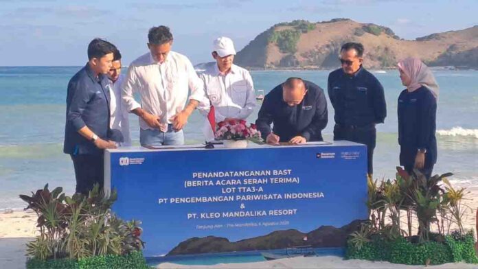 Lombok (ekbisntb.com) – Proses pembangunan Luxury Resort di kawasan Pantai Tanjung A’an kawasan The Mandalika Desa Sengkol Kecamatan Pujut, Lombok Tengah (Loteng) dimulai. Ditandai dengan penandatangan dan penyerahan Berita Acara Serah Terima (BAST) lahan seluas 10 hektar dari Injouney Tourism Development Corporation (ITDC) kepada PT. Kleo Mandalika Resort selaku pengembangan bertempat di pantai Tanjung A’an, Rabu 6 Agustus 2028 kemarin.