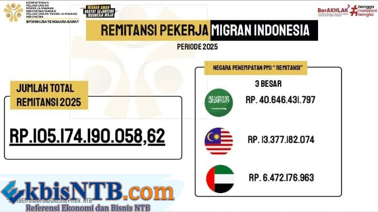 Mataram (ekbisntb.com) – Pekerja Migran Indonesia (PMI) asal Nusa Tenggara Barat yang bekerja di Arab Saudi tercatat sebagai penyumbang terbesar remitansi atau kiriman uang ke daerah sepanjang tahun 2025. Berdasarkan data Bank Indonesia (BI) Provinsi NTB, total remitansi PMI NTB selama 2025 mencapai Rp105,17 miliar.