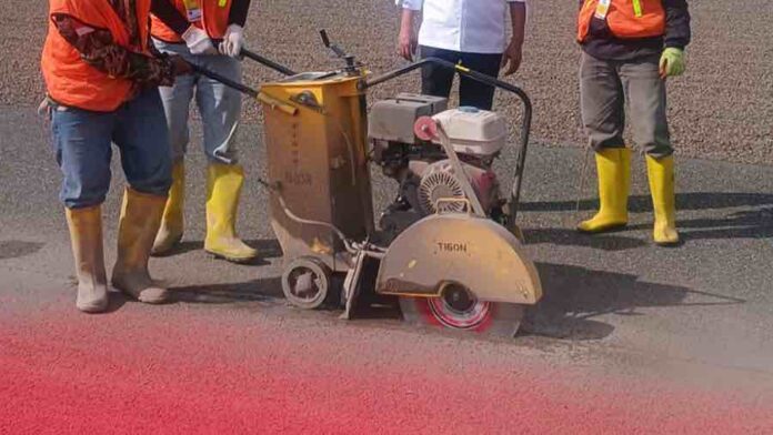 Donny Mahardjono, VP Motorsport MGPA menjelaskan, “Pemotongan aspal dilakukan di beberapa titik, yaitu T1 exit/T2 entry seluas 10789,2 meter persegi, T5 entry seluas 858 meter persegi, T10 entry seluas 992,8 meter persegi, T10 exit/T11 entry seluas 3127.2 meter persegi dan T13 entry seluas 780.8 meter persegi.”
