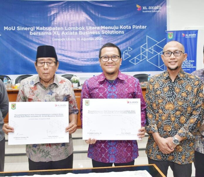 Lombok(ekbisntb.com) – Perusahaan layanan telekomunikasi PT. XL Axiata, Tbk., sepakat menjalin kerjasama dengan Pemda Kabupaten Lombok Utara (KLU) untuk menerapkan konsep layanan Kota Cerdas (Smart City). Pelayanan berbasis IT itu nantinya diharapkan dapat meningkatkan produktivitas Pemda dan masyarakat, serta menghadirkan efisiensi pada beban pengeluaran melalui layanan yang bersifat mobile.