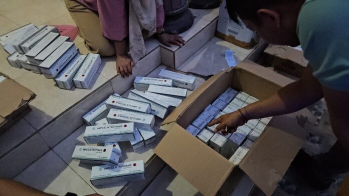 Sebanyak 136 box (13.600 tablet) yang terdiri dari 36 box Supertetra, 30 box Ampicillin dan 40 box Metrolet dan 30 box Asam Mefenamat diamankan oleh Tim dari rumah pelaku.