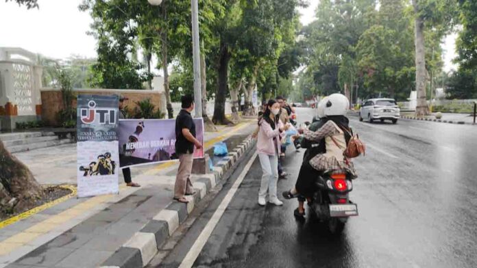 Ketua IJTI NTB Riadis Sulhi, mengungkapkan rstusan bungkus takjil dibagikan menjadi momentum berbagi kepada warga  di Jalan Pejanggik atau ddi depan Kantor Gubernur NTB.