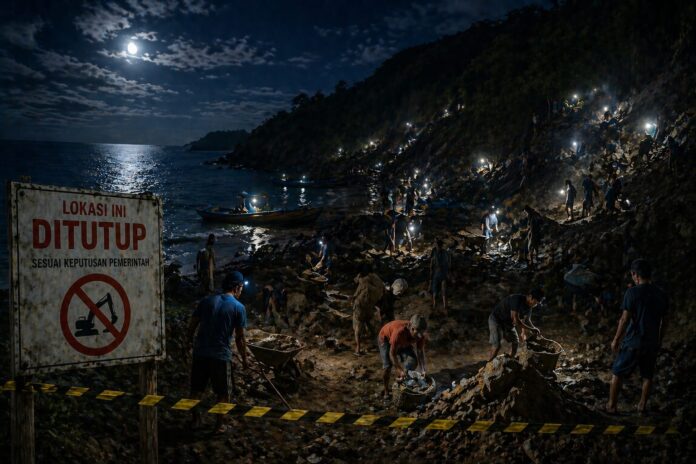 Mataram (ekbisntb.com) – Tambang emas ilegal yang sempat ditutup Komisi Pemberantasan Korupsi (KPK) yang ada di kawasan Sekotong, Lombok Barat kembali beroperasi. Tambang ilegal itu diduga bisa menghasilkan hingga Rp1 triliun lebih per tahun, karena tidak resmi, KPK menutup operasional tambang tersebut tahun 2024 lalu.