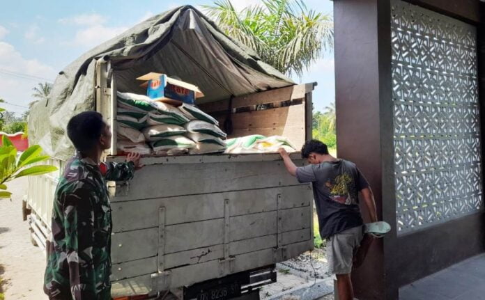 “Kami kawal langsung pendropan beras bantuan ini. Karena sebagai aparat kewilayahan kami harus pastikan bantuan tersebut sampai ke tangan yang benar-benar membutuhkan,” terang Serda Yogi.