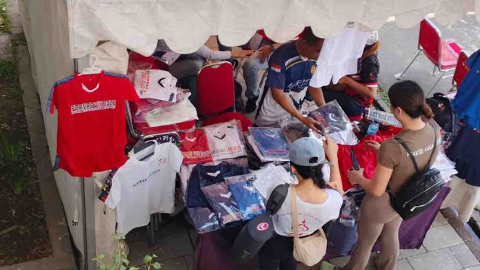 Lombok (ekbisntb.com) – Suasana Graha Bhakti Praja Kantor Gubernur NTB Rabu, 30 Juli 2025, tak hanya dipenuhi hiruk pikuk peserta yang mengikuti event Festival Olahraga Masyarakat Nasional (Fornas) VIII NTB 2025. Di bawah tangga Graha Bhakti Praja, Faisal, jauh-jauh datang dari Bandung, Jawa Barat, menjajakan kaos dan suvenir khas Fornas dan menarik perhatian para pengunjung.